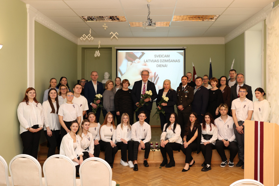 Koledžas direktore Līvija Jankovska sirsnīgi sveica visus klātesošos valsts svētkos. Sirsnīgus apsveikuma vārdus Latvijai un klātesošajiem svinīgajā pasākumā teica Daugavpils Universitātes rektors, profesors akadēmiķis Arvīds Barševskis, Daugavpils Universitātes rektora vietnieks attīstības jautājumos Jānis Kudiņš un Zemessardzes 34. kājnieku bataljona komandieris majors  Valērijs Baranovskis.